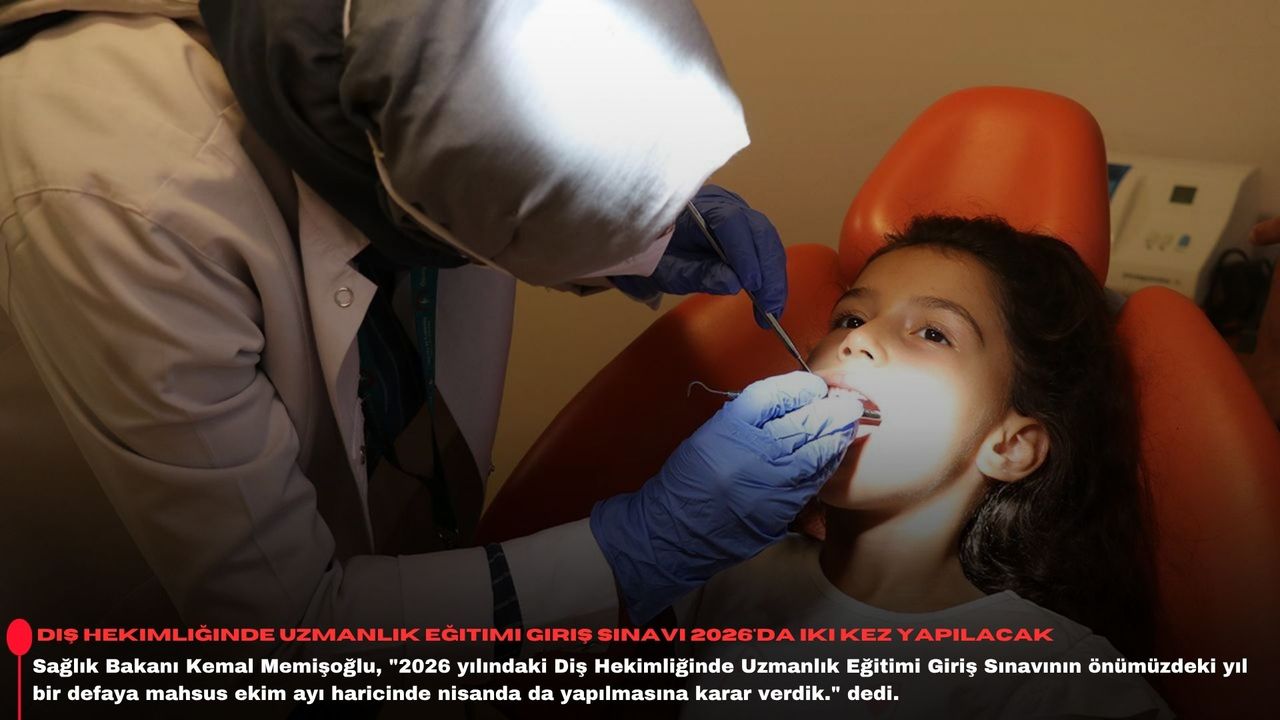 Sağlık Bakanı Kemal Memişoğlu, 2026'daki Diş Hekimliğinde Uzmanlık Eğitimi Giriş Sınavı'nın bir defaya mahsus ekim ayı haricinde nisanda da yapılmasına karar verdiklerini açıkladı.