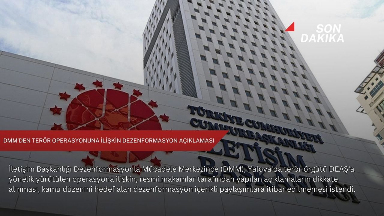 DMM'den yapılan açıklamada, Yalova'da terör örgütü DEAŞ'a yönelik yürütülen operasyona ilişkin olarak, sosyal medya başta olmak üzere çeşitli mecralarda gerçek dışı, doğrulanmamış ve kamuoyunu kasıtlı şekilde yanıltmaya yönelik paylaşımların yapıldığının tespit edildiği belirtilerek, şunlar kaydedildi: