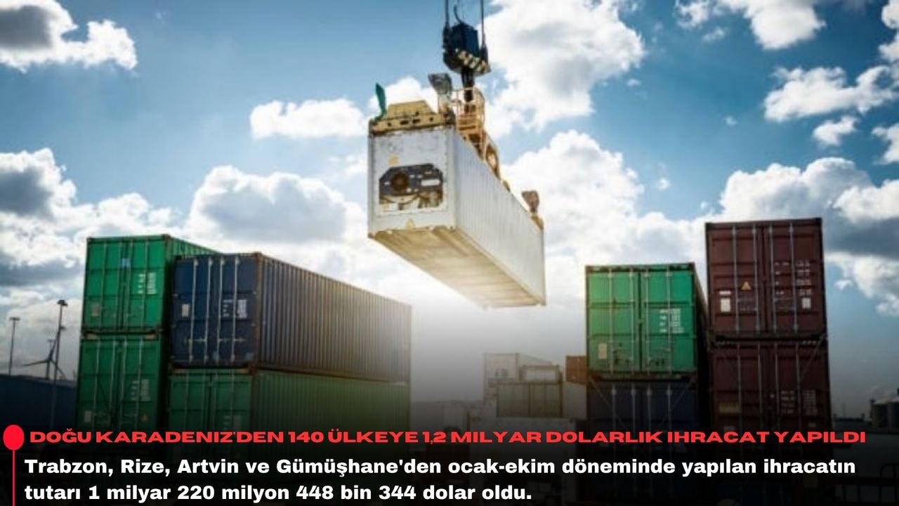 Doğu Karadeniz İhracatçılar Birliğinden (DKİB) yapılan yazılı açıklamaya göre, Trabzon'dan 917 milyon 469 bin dolar, Rize'den 161 milyon 494 bin dolar, Gümüşhane'den 82 milyon 762 bin dolar, Artvin'den 58 milyon 722 bin dolar karşılığında ihracat gerçekleştirildi.