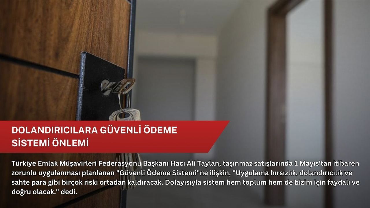 Ticaret Bakanlığı, taşınmaz satışlarında alıcı ve satıcıların dolandırıcılık, hırsızlık ve sahtecilik riskine maruz kalmaması, kayıt dışılığın azaltılması, para transferinin güvenli bir ortamda gerçekleştirilmesi amacıyla ikinci el araç satışlarında uygulanan Güvenli Ödeme Sistemi'ni taşınmaz satışlarında da zorunlu hale getirmeye hazırlanıyor. Bu amaçla Taşınmaz Ticareti Hakkında Yönetmelik'te değişiklik çalışması yapıldı.