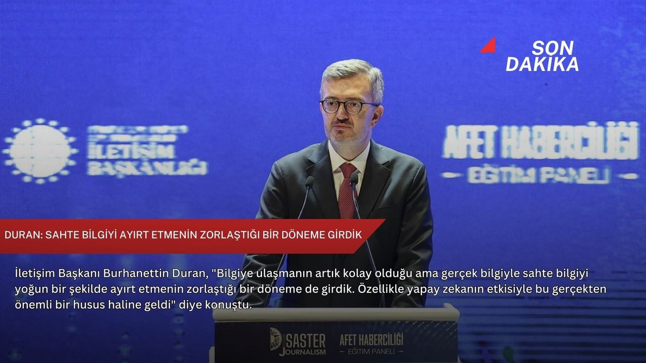 İletişim Başkanı Burhanettin Duran, Cumhurbaşkanlığı İletişim Başkanlığında düzenlenen Afet Haberciliği Eğitim Paneli'nde yaptığı konuşmada, "Afet Haberciliği: Haberin Felakete Dönüşmesini Engellemek" adlı Avrupa Birliği Erasmus Projesi münasebetiyle bir arada olduklarını belirtti.