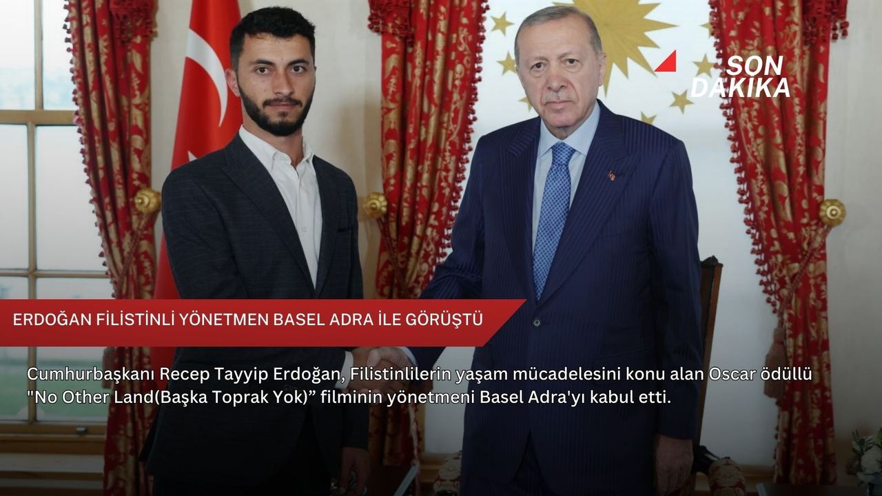 Cumhurbaşkanı Recep Tayyip Erdoğan, Filistinli yönetmen Basel Adra'yı Cumhurbaşkanlığı Dolmabahçe Ofisi'nde kabul etti. Cumhurbaşkanlığı Dolmabahçe Çalışma Ofisi'ndeki görüşme basına kapalı gerçekleşti.