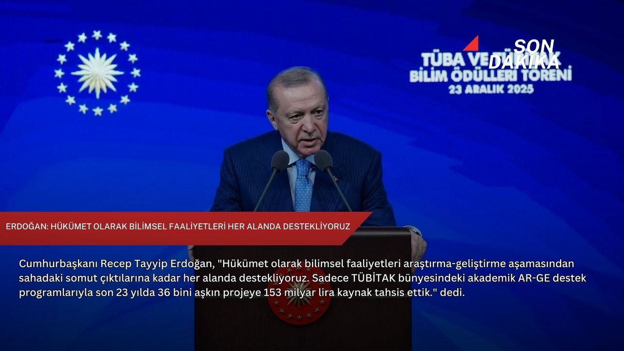 Cumhurbaşkanı Erdoğan, Beştepe Millet Kongre ve Kültür Merkezi'nde düzenlenen "2025 TÜBA ve TÜBİTAK Bilim Ödülleri Töreni"nde konuştu.