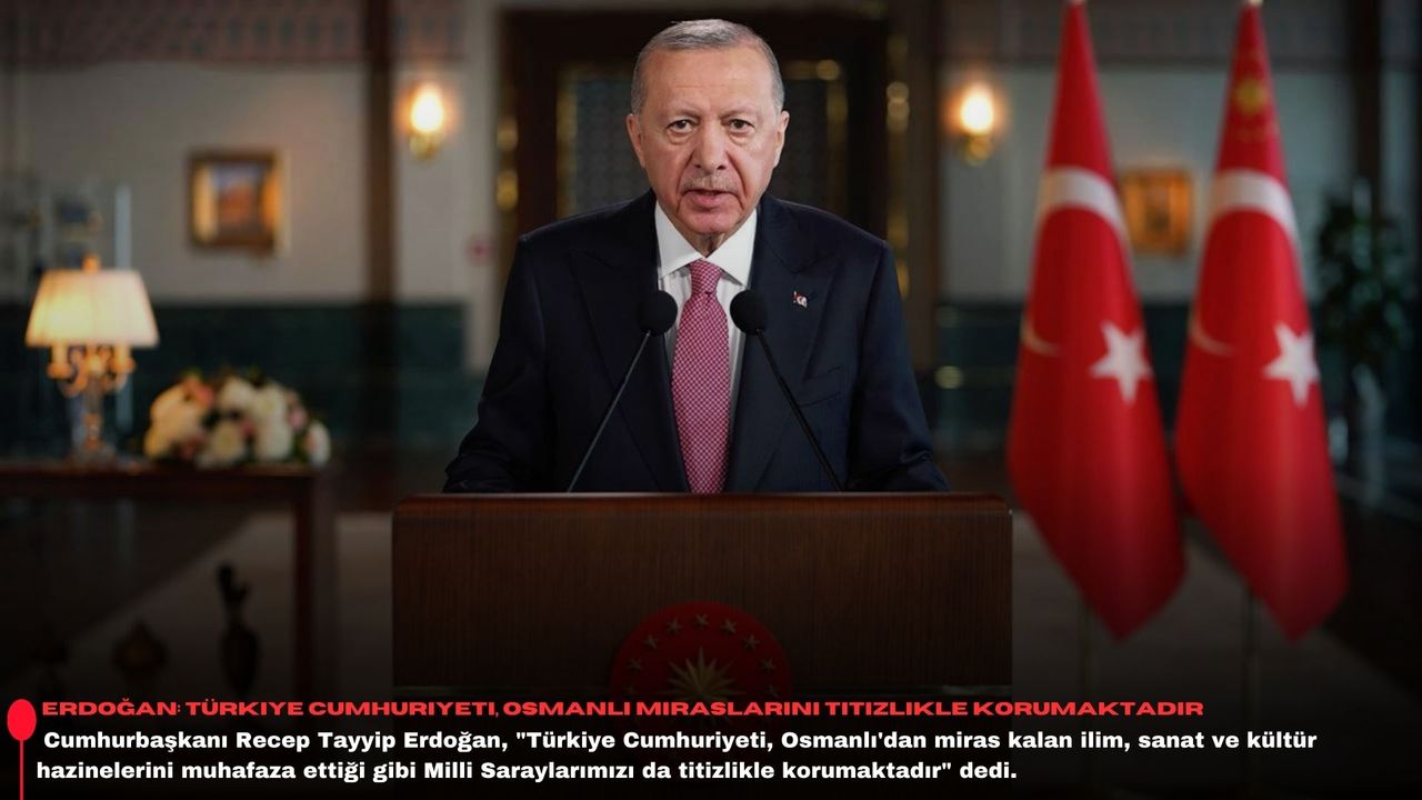 Cumhurbaşkanı Erdoğan, Türkiye Cumhuriyeti'nin, Osmanlı'dan miras kalan ilim, sanat ve kültür hazinelerini muhafaza ettiği gibi Milli Sarayları da titizlikle koruduğuna dikkati çekti.