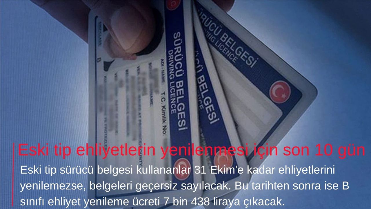 Eski tip sürücü belgeleri 31 Ekim 2025'e kadar 15 lira karşılığında yenilenebilecek.