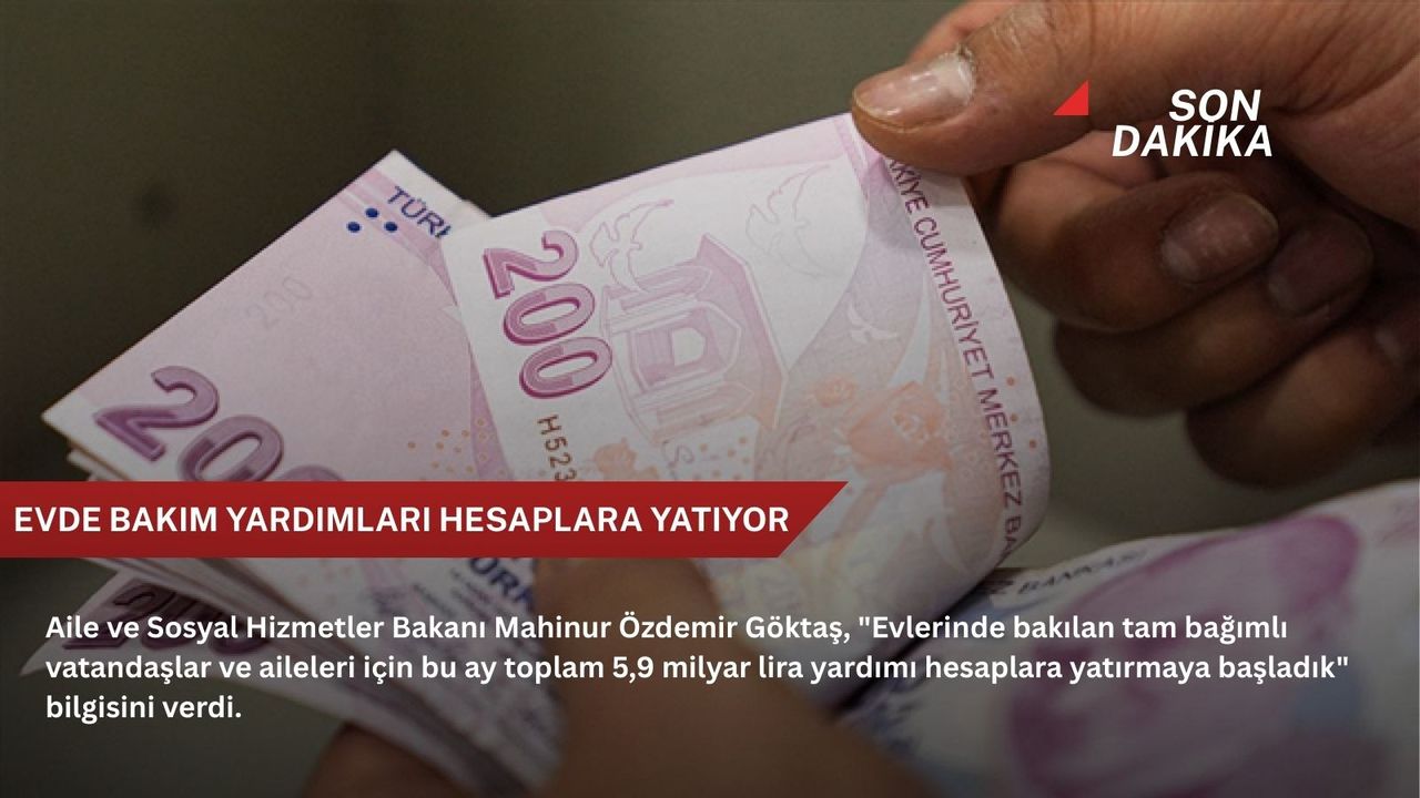 Evlerinde bakılan tam bağımlı vatandaşlar ve aileleri için bu ay toplam 5,9 milyar lira Evde Bakım Yardımı’nı hesaplara yatırmaya başladık. Hali hazırda 517 bin vatandaşımız Evde Bakım Yardımı’ndan yararlanıyor. Yapılan bu ödemeyle birlikte 2025 yılında toplam 67,7 milyar liralık destek sağladık. Ödemelerin tüm engelli vatandaşlarımıza ve ailelerine hayırlı olmasını diliyorum.