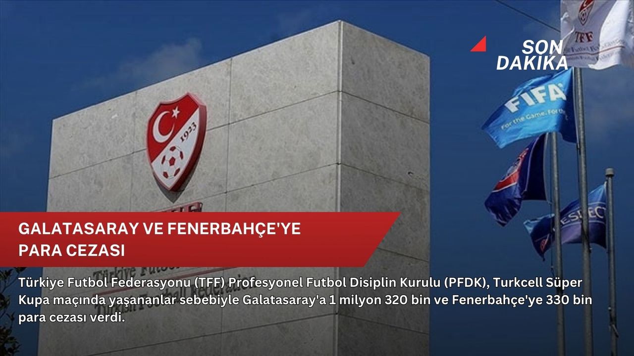 FF'nin sitesinde yer alan açıklamaya göre kurul, taraftarının neden olduğu saha olayları sebebiyle 220 bin lira para cezasına hükmettiği Galatasaray'a, kupa seremonisine katılmadığı için de 1 milyon 100 bin lira ceza uyguladı.