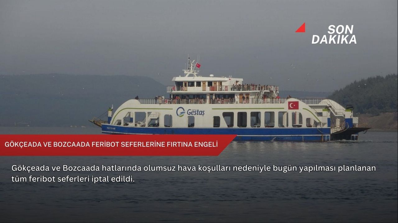 Çanakkale Boğazı ile adalar hattındaki ulaşımı sağlayan GESTAŞ Deniz Ulaşım AŞ'den yapılan açıklamada, bölgedeki olumsuz hava şartları nedeniyle bugünkü Kabatepe-Gökçeada ve Geyikli-Bozcaada seferlerinin tümünün iptal edildiği duyuruldu.
