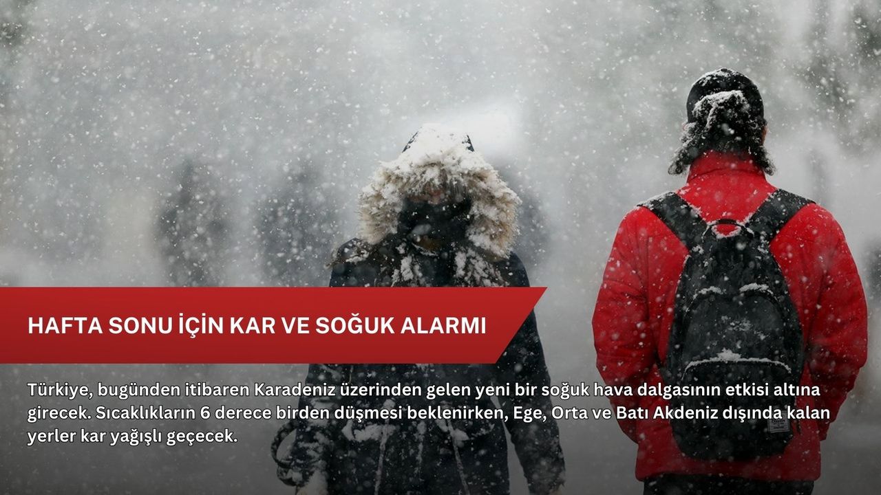 Meteoroloji Genel Müdürlüğü tarafından yapılan son tahminlerden derlenen bilgilere göre, hava sıcaklıklarının iç ve batı kesimlerde 4 ila 6 derece azalacağı tahmin edilirken; Marmara, Karadeniz, İç Anadolu Doğu Anadolu ve Güneydoğu Anadolu bölgelerinde karla karışık yağmur ve kar yağışının etkili olacağı öngörülüyor.