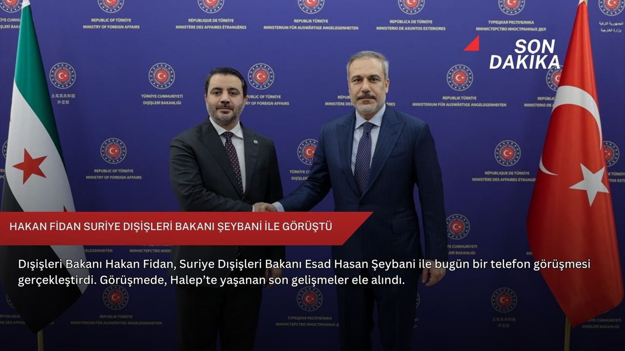 Dışişleri Bakanlığı kaynaklarından edinilen bilgiye göre Hakan Fidan, Suriye Dışişleri Bakanı Esad Hasan Şeybani ile telefon görüşmesi yaptı.
