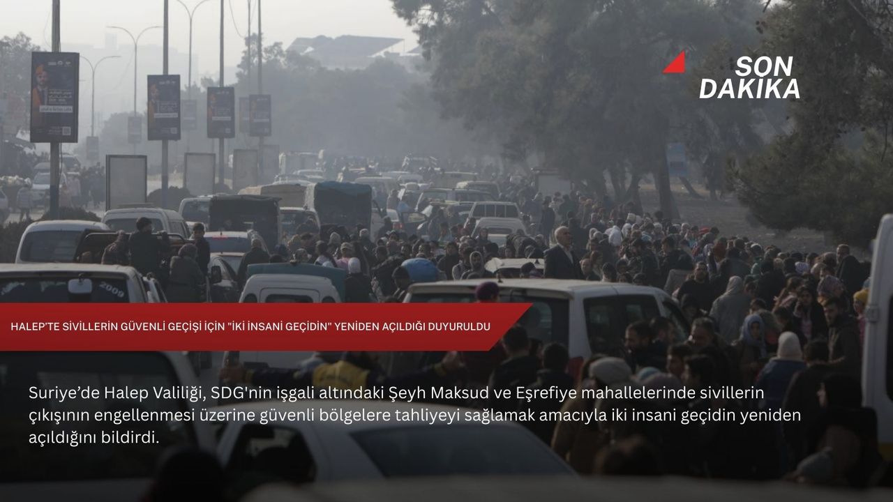Açıklamada, Şeyh Maksud ve Eşrefiye mahallelerinden ayrılmak isteyen sivillerin, bölge halkınca bilinen El-Avarid ve Zuhur Caddesi üzerindeki geçitleri kullanarak Halep kentindeki güvenli bölgelere geçebileceği kaydedildi.