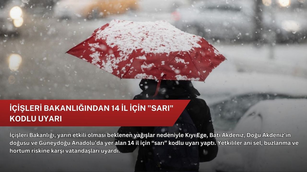 Bakanlığın NSosyal hesabından, Meteoroloji Genel Müdürlüğünden alınan son bilgiler doğrultusunda 14 ilin "sarı" kodla işaretlendiği Türkiye haritası paylaşıldı.
