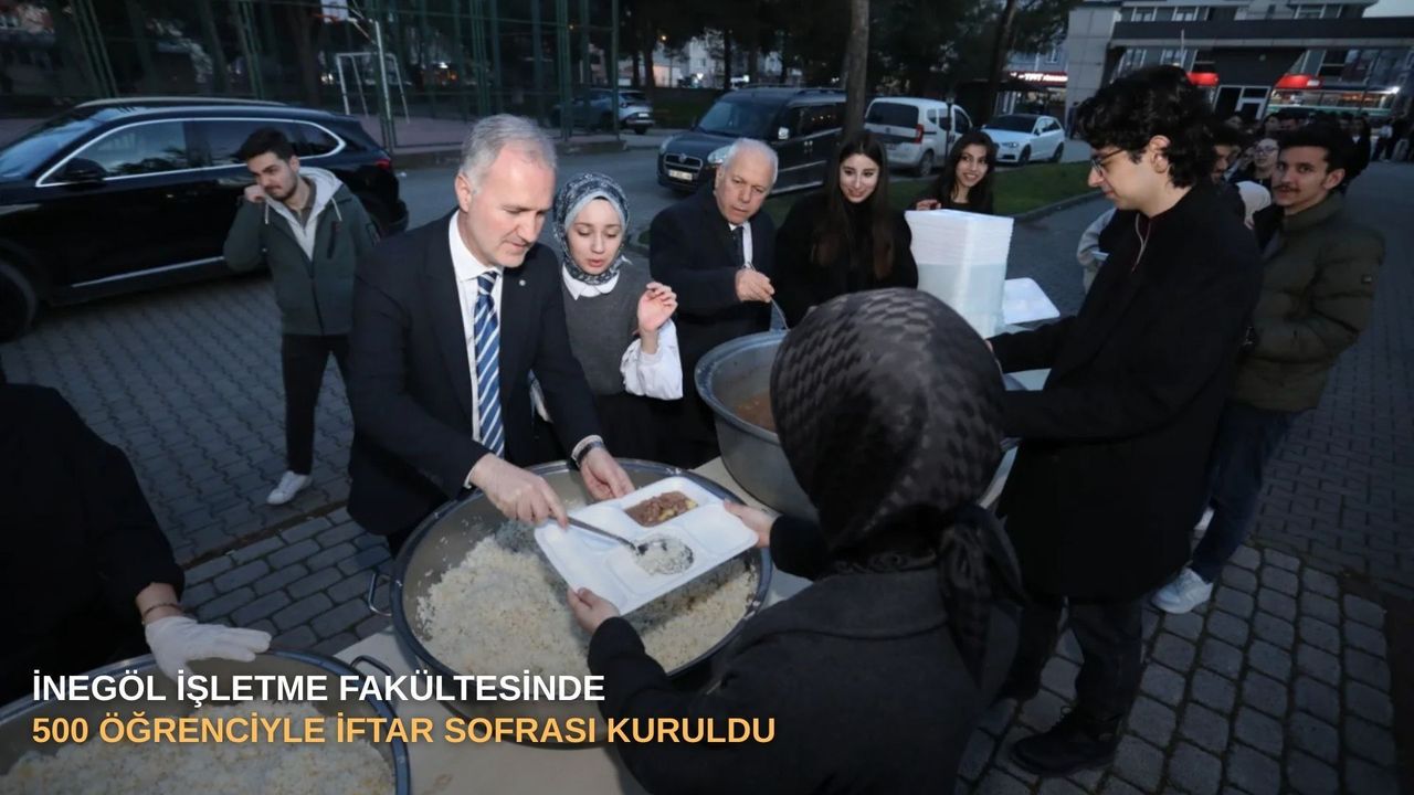 İnegöl Belediyesi ile Uludağ Üniversitesi İnegöl İşletme Fakültesi iş birliğinde öğrenciler için iftar programı düzenlendi. Fakülte bahçesinde gerçekleştirilen ve geleneksel hale getirilmesi hedeflenen organizasyona yaklaşık 500 öğrenci katıldı. Ramazan ayının manevi atmosferinde bir araya gelen öğrenciler, aynı sofrayı paylaşarak birlik ve beraberlik duygusunu yaşadı.