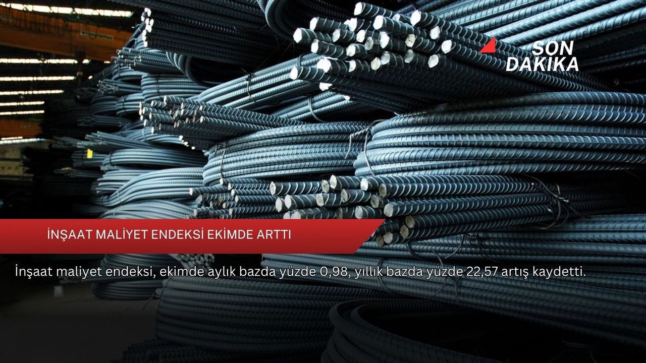 Buna göre, inşaat maliyet endeksi, ekimde bir önceki aya göre yüzde 0,98 arttı, bir önceki yılın aynı ayına göre yüzde 22,57 arttı. Bir önceki aya göre malzeme endeksi yüzde 1,18 arttı, işçilik endeksi yüzde 0,59 arttı. Ayrıca bir önceki yılın aynı ayına göre malzeme endeksi yüzde 18,68 arttı, işçilik endeksi yüzde 30,49 arttı.