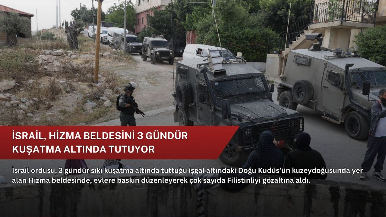 İsrail ordusu dün Hizma beldesindeki ablukayı sıkılaştırarak, belde sokaklarında Filistinlilere buranın “kapalı askeri bölge” olduğu ve “bir sonraki emre kadar” terk edilemeyeceği yönünde bildiriler dağıtmıştı.