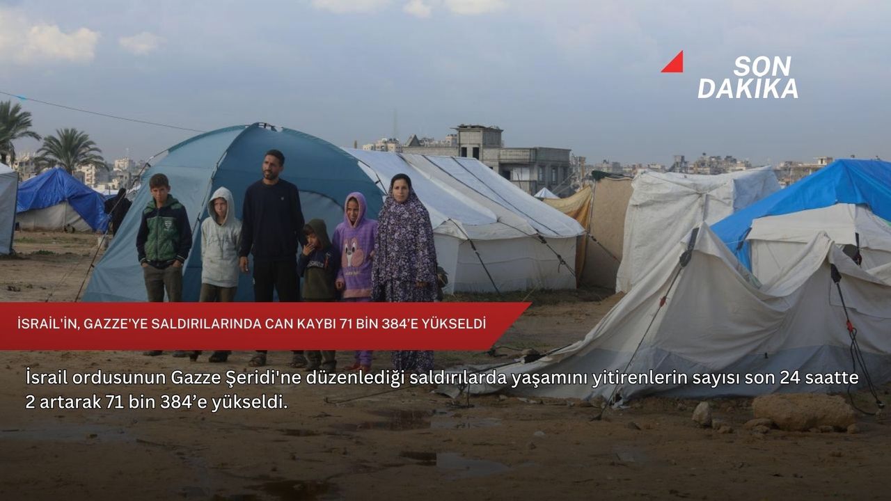 İsrail'in Gazze Şeridi'ne Ekim 2023'te başladığı saldırılarda hayatını kaybedenlerin sayısının 71 bin 384'e, yaralıların sayısının ise 171 bin 251'e yükseldiği belirtildi.