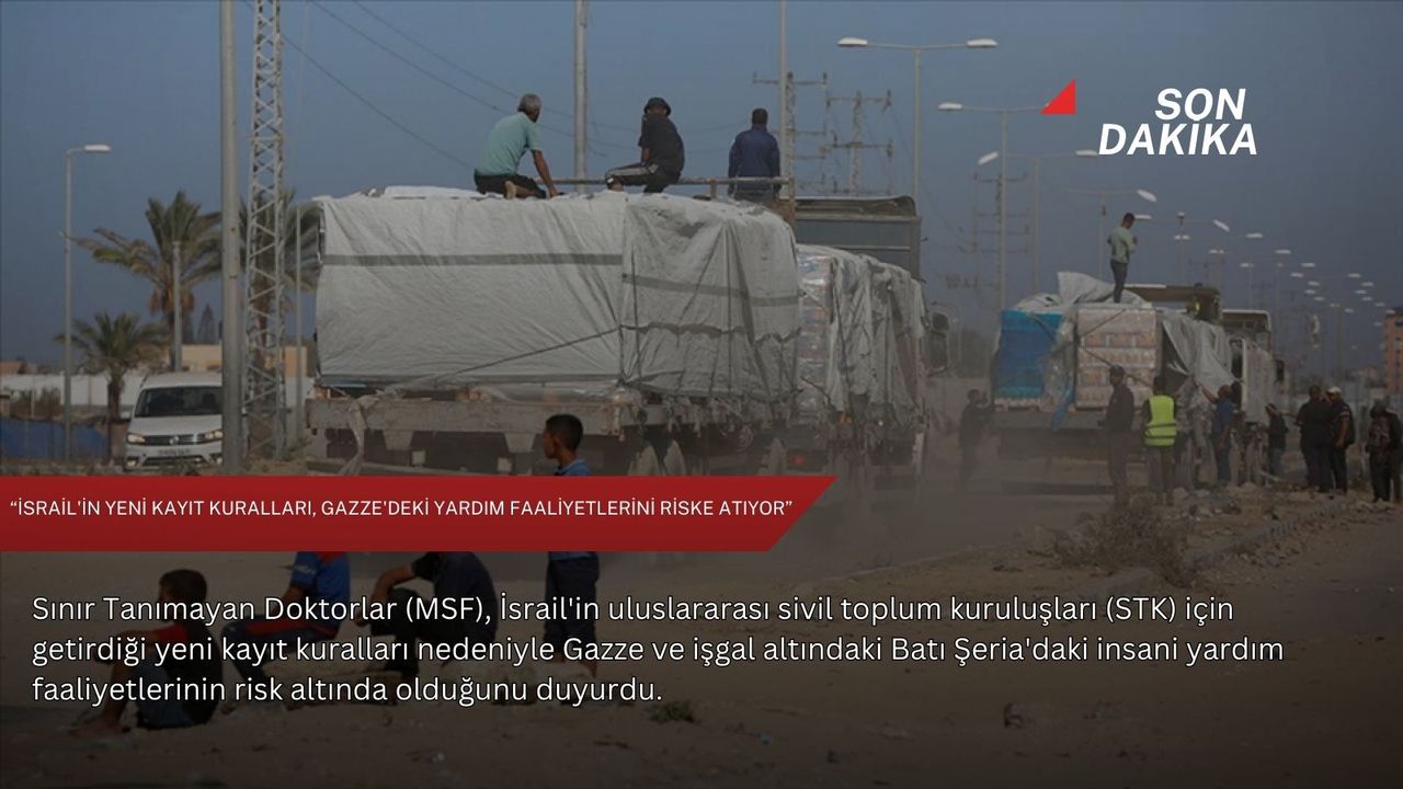 Açıklamada, "İsrail'in uluslararası STK'ler için getirdiği yeni kayıt kuralları, Gazze ve Batı Şeria'da yaşayan yüz binlerce insanı 2026'da hayati önem taşıyan sağlık hizmetlerinden mahrum bırakma riski taşıyor. Gazze'de faaliyet gösteren en büyük sağlık kuruluşlarından biri olan MSF, yeni şartların 1 Ocak'tan itibaren STK'lerin kayıtlarının iptal edilmesiyle sonuçlanabileceğini belirtiyor. Bu kayıt iptali, MSF de dahil kuruluşların Gazze ve Batı Şeria'daki insanlara temel hizmetler sunmasını engelleyecek." ifadeleri kullanıldı.