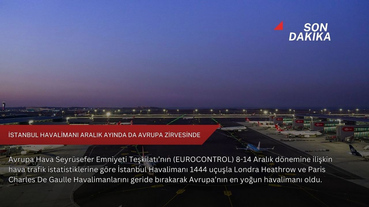 2025 Yılı 8-14 Aralık döneminde, Avrupa’daki en yoğun havalimanları arasında sıralamasında İstanbul Havalimanı, günlük ortalama 1444 uçuş ile ilk sırada yer aldı.
