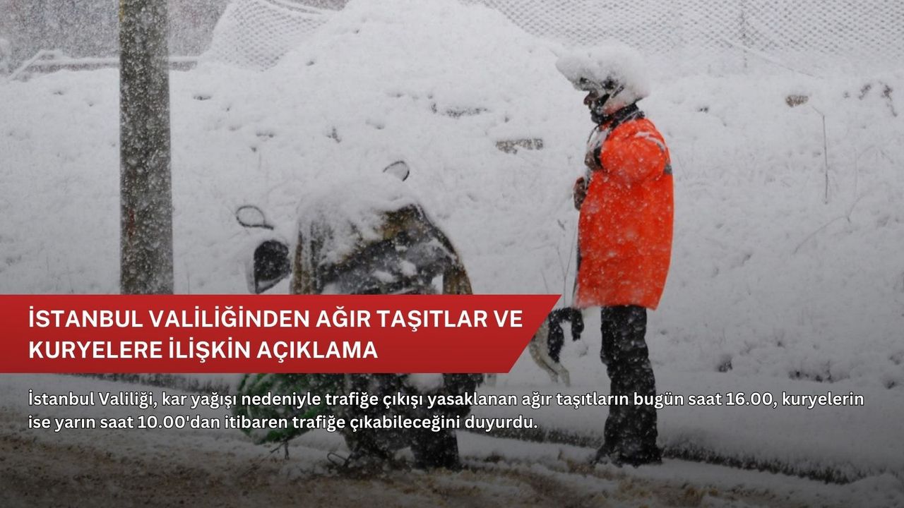 İstanbul Valiliği'nden yapılan açıklamada, kentte etkili olan kar yağışı nedeniyle getirilen ağır tonajlı kamyonların trafiğe çıkış yasağının bugün saat 16.00 itibarıyla sona ereceği bildirildi.