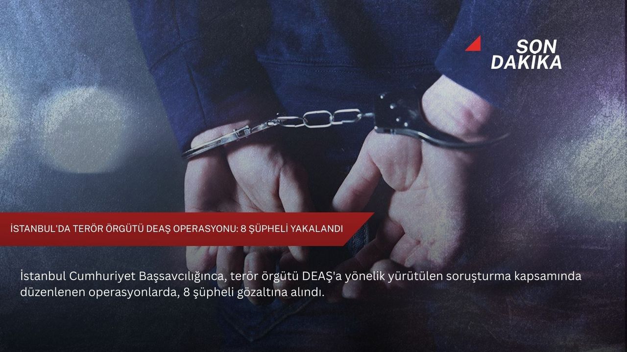 Soruşturma kapsamında B.A, B.K, D.Ç, H.D, M.G, O.E, S.A. ve H.M.C.'nin, MASAK ve HTS verileri üzerinde yapılan incelemelerde terör örgütü DEAŞ kapsamında daha önce adli işlem görmüş şüphelilere para transferleri ve irtibatlarının bulunduğu tespitine yer verilen açıklamada, şüphelilerin yakalanmasına yönelik İstanbul'da 8 farklı adrese düzenlenen operasyonlarda 8 şüphelinin gözaltına alındığı, adreslerde yapılan aramalarda ele geçirilen dijital materyallere el konulduğu bildirildi.