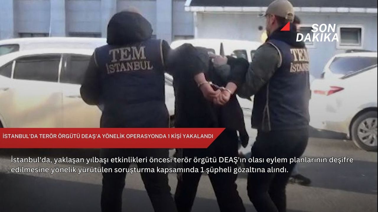 İstanbul Cumhuriyet Başsavcılığı Terör Suçları Soruşturma Bürosunca yürütülen soruşturma kapsamında, DEAŞ'ı, yaklaşan yılbaşı etkinlikleri kapsamında başta gayrimüslim kişilere yönelik olmak üzere Türkiye'yi hedef alan eylem çağrıları ve saldırı planlamalarının deşifre edilmesine yönelik yürütülen çalışmalarda bir zanlı belirlendi.