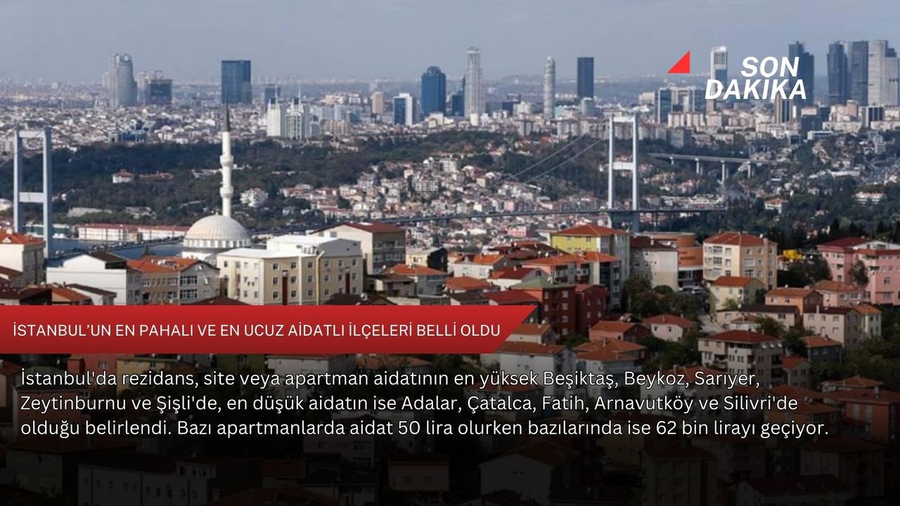 Hazırlanan raporda, kentteki aidatların en yüksek ve en düşük olduğu ilçeler sıralandı. Buna göre, İstanbul'da en yüksek aidat Beşiktaş, Beykoz, Sarıyer, Zeytinburnu ve Şişli'de, en düşük aidat ise Adalar, Çatalca, Fatih, Arnavutköy ve Silivri'de veriliyor.