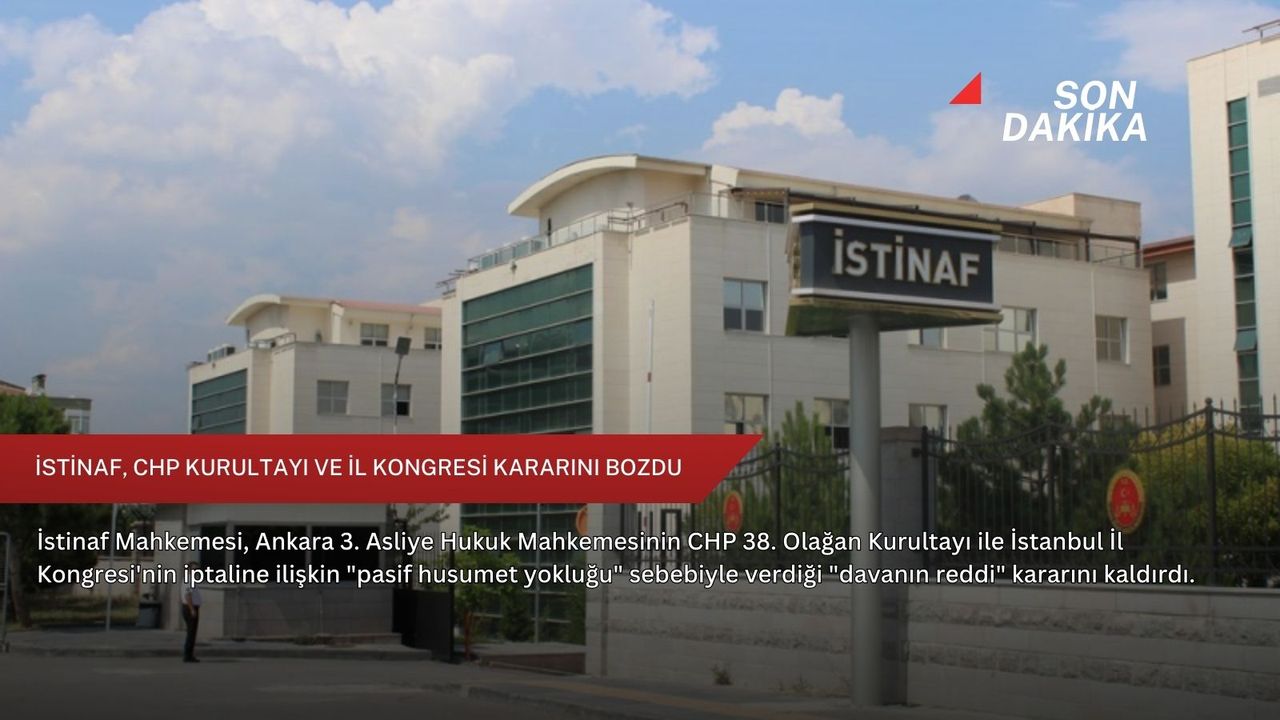 Ankara Bölge Adliye Mahkemesi 4. Hukuk Dairesi, CHP 38. Olağan Kurultayı ile İstanbul İl Kongresi'nin iptaline ilişkin açılan davada Ankara 3. Asliye Hukuk Mahkemesince verilen "davanın reddi" kararına ilişkin itirazı inceledi.