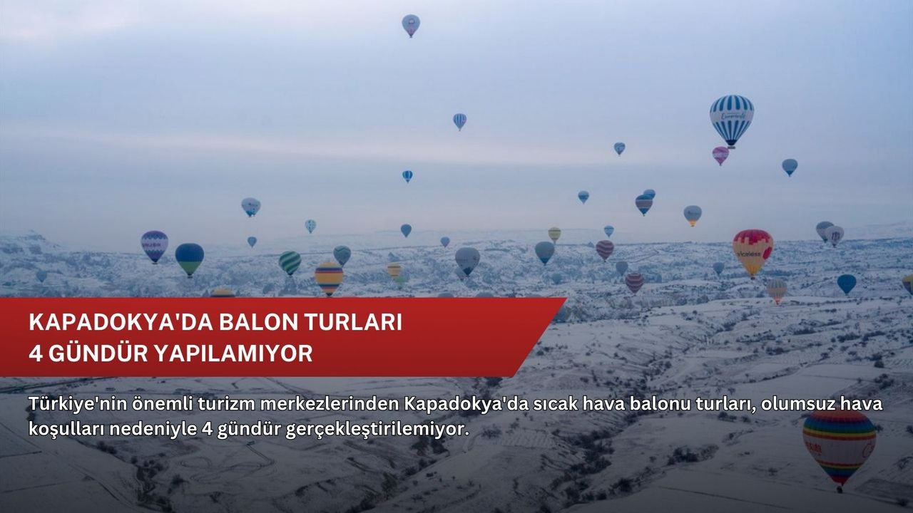 Göreme beldesi ve Çavuşin köyündeki arazilerden erken saatlerde havalanarak, peribacaları ve doğal kaya oluşumlarıyla kaplı vadiler üzerinde uçan ve bölgeyi ziyaret eden turistlere sunulan önemli aktivitelerden biri olan balon turları, bugün de iptal edildi.