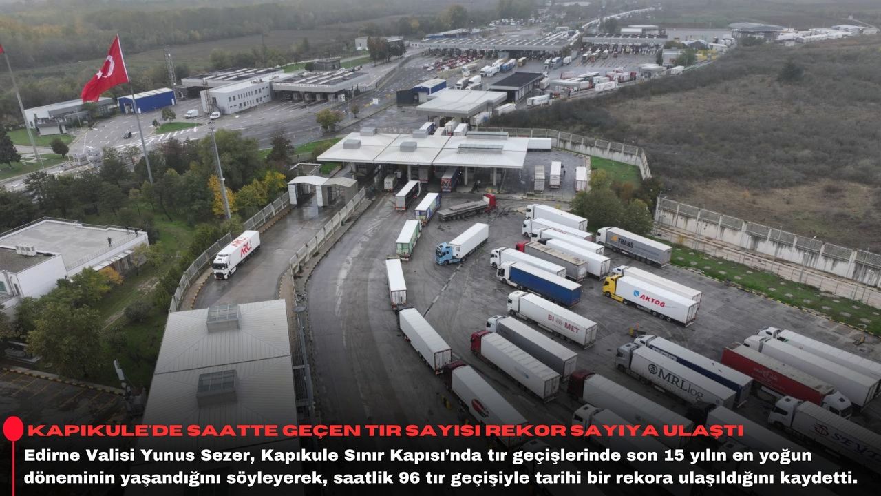 Edirne Valisi Sezer, Kapıkule Sınır Kapısı'nda gazetecilere yaptığı açıklamada, sınır kapılarında tır geçişleriyle ilgili alınan tedbirlerin sürekli gözden geçirildiğini söyledi.