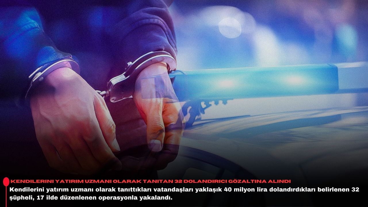 Şüphelilerin, kendilerini yatırım uzmanı olarak tanıtarak vatandaşları 40 milyon lira dolandırdığı aktarılan açıklamada, yürütülen soruşturma kapsamında 17 ilde eş zamanlı operasyon düzenlendiği belirtildi.
