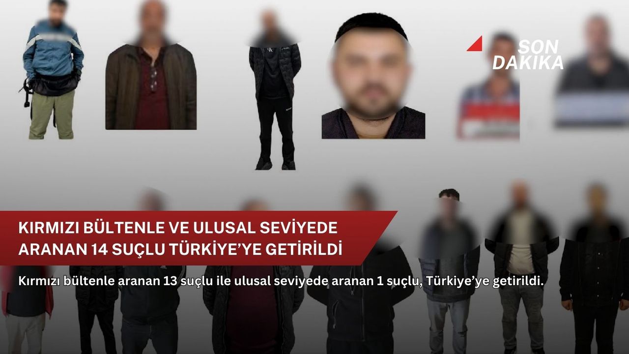 İçişleri Bakanı Ali Yerlikaya, kırmızı bültenle aranan 13 suçlu ile ulusal seviyede aranan 1 suçlunun, Türkiye’ye getirildiğini açıkladı.