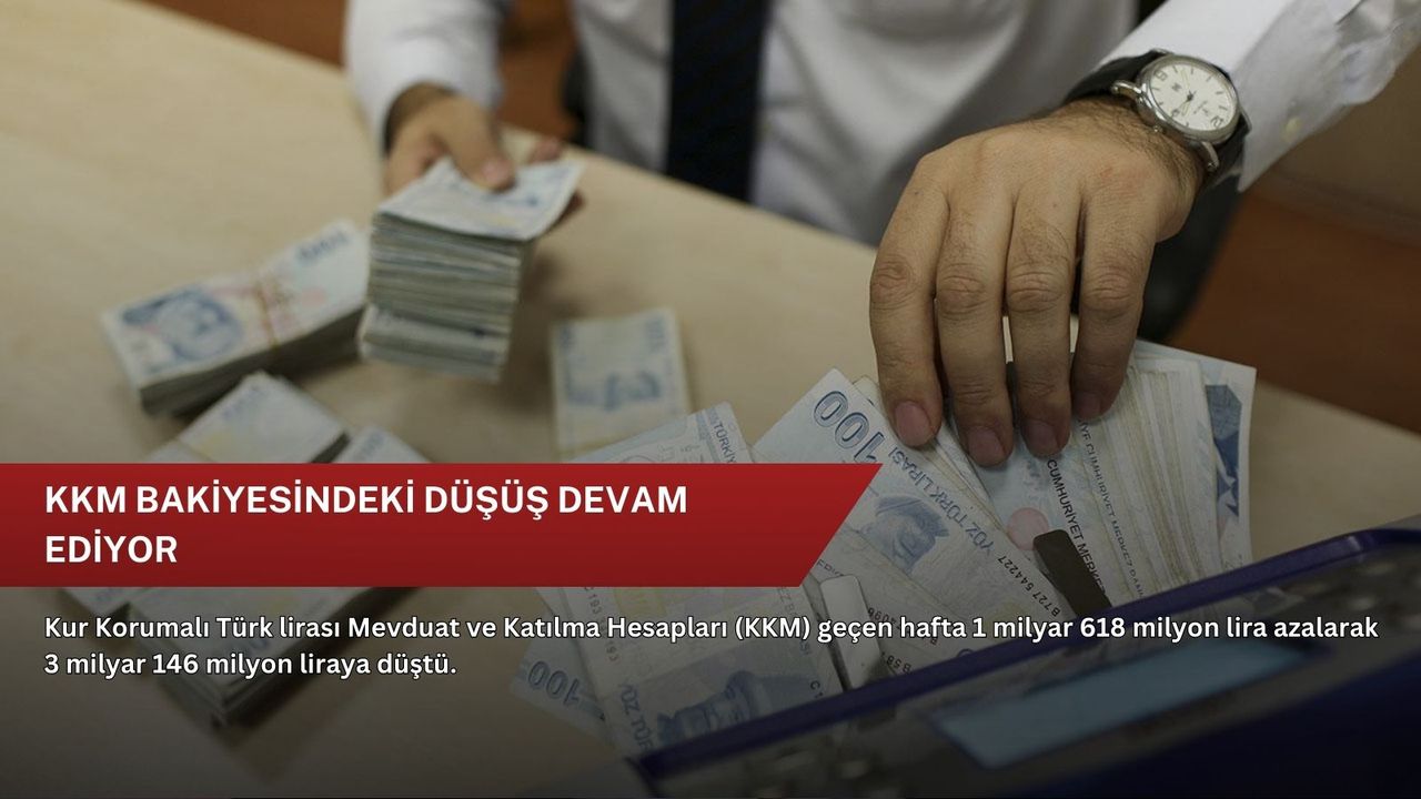 KKM bakiyesi ise geçen hafta 1 milyar 618 milyon lira azalarak 3 milyar 146 milyon liraya geriledi. Böylece KKM büyüklüğü, toplam mevduatın yüzde 0,01'ini oluşturdu.