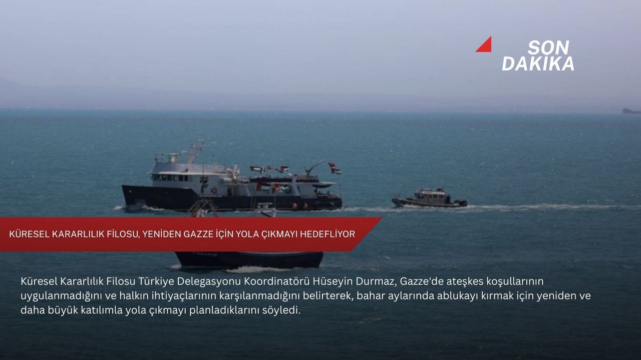 Durmaz, Gazze'deki mevcut durum nedeniyle daha önce filoya katılanlar ile diğer kuruluşların, yeniden daha büyük bir filoyla yola çıkmanın gerekli olduğunu düşündüklerini söyledi.