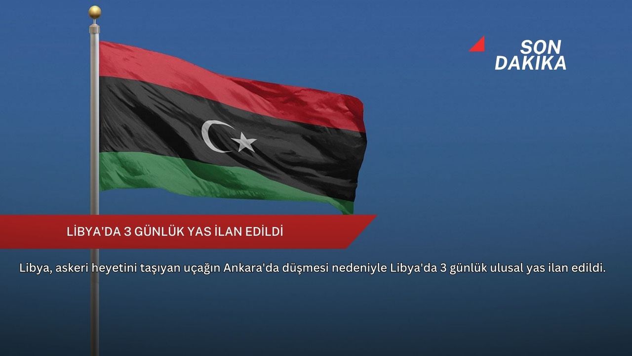 Libya Ulusal Birlik Hükümeti, Ankara'da düşen uçakta Libya Genelkurmay Başkanı Muhammed el-Haddad ve beraberindeki heyetin hayatını kaybetmesi nedeniyle (3 gün) milli yas ilan etti.