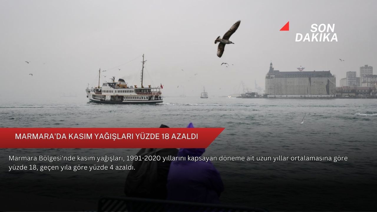 Marmara Bölgesi'nde bu yılın kasım yağışları, uzun yıllar ortalamasına göre yüzde 18, geçen yılın aynı dönemine göre yüzde 4 azaldı.