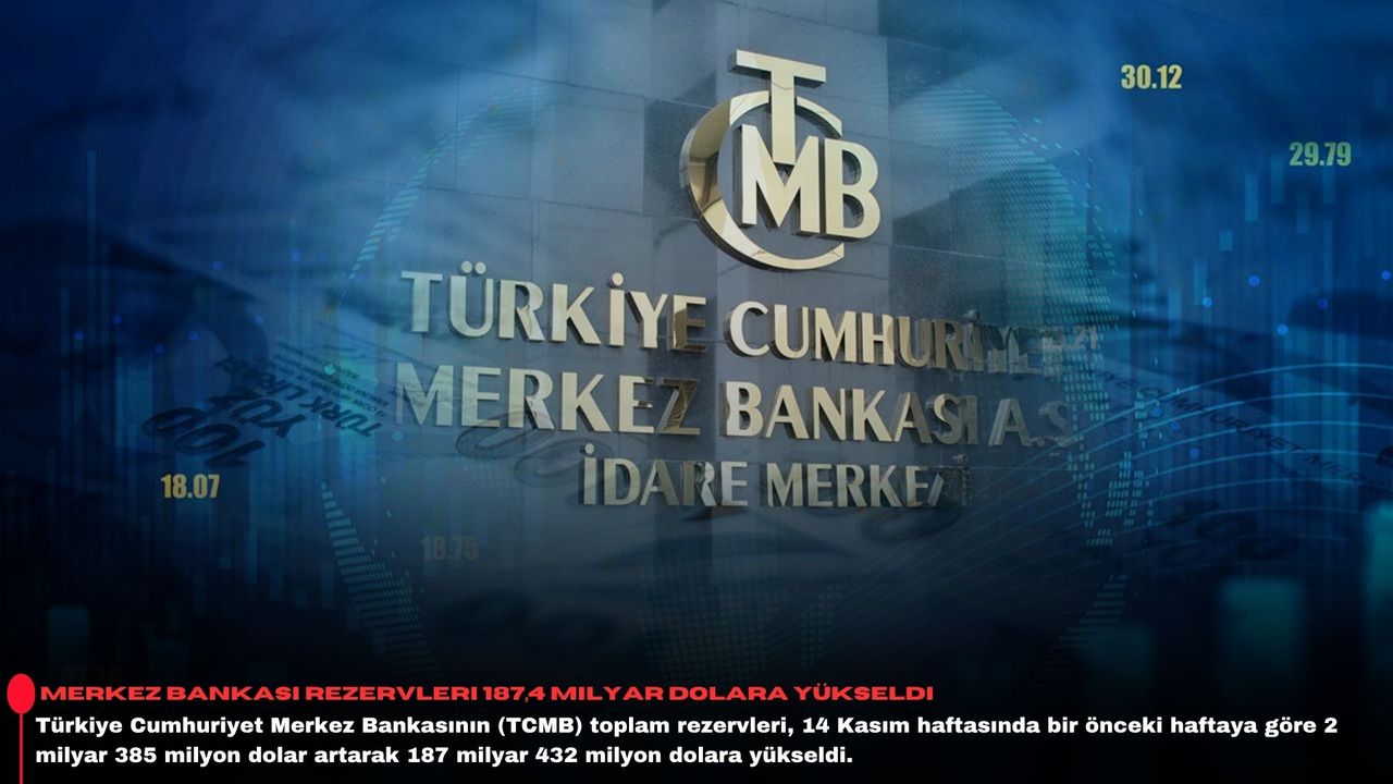 Böylece Merkez Bankasının toplam rezervleri, 14 Kasım haftasında bir önceki haftaya göre 2 milyar 385 milyon dolar artışla 185 milyar 47 milyon dolardan, 187 milyar 432 milyon dolara çıktı.