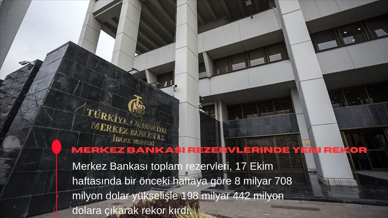 Böylece Merkez Bankasının toplam rezervleri, 17 Ekim haftasında bir önceki haftaya göre yaklaşık 8 milyar 708 milyon dolar artışla 189 milyar 734 milyon dolardan 198 milyar 442 milyon dolara yükseldi.