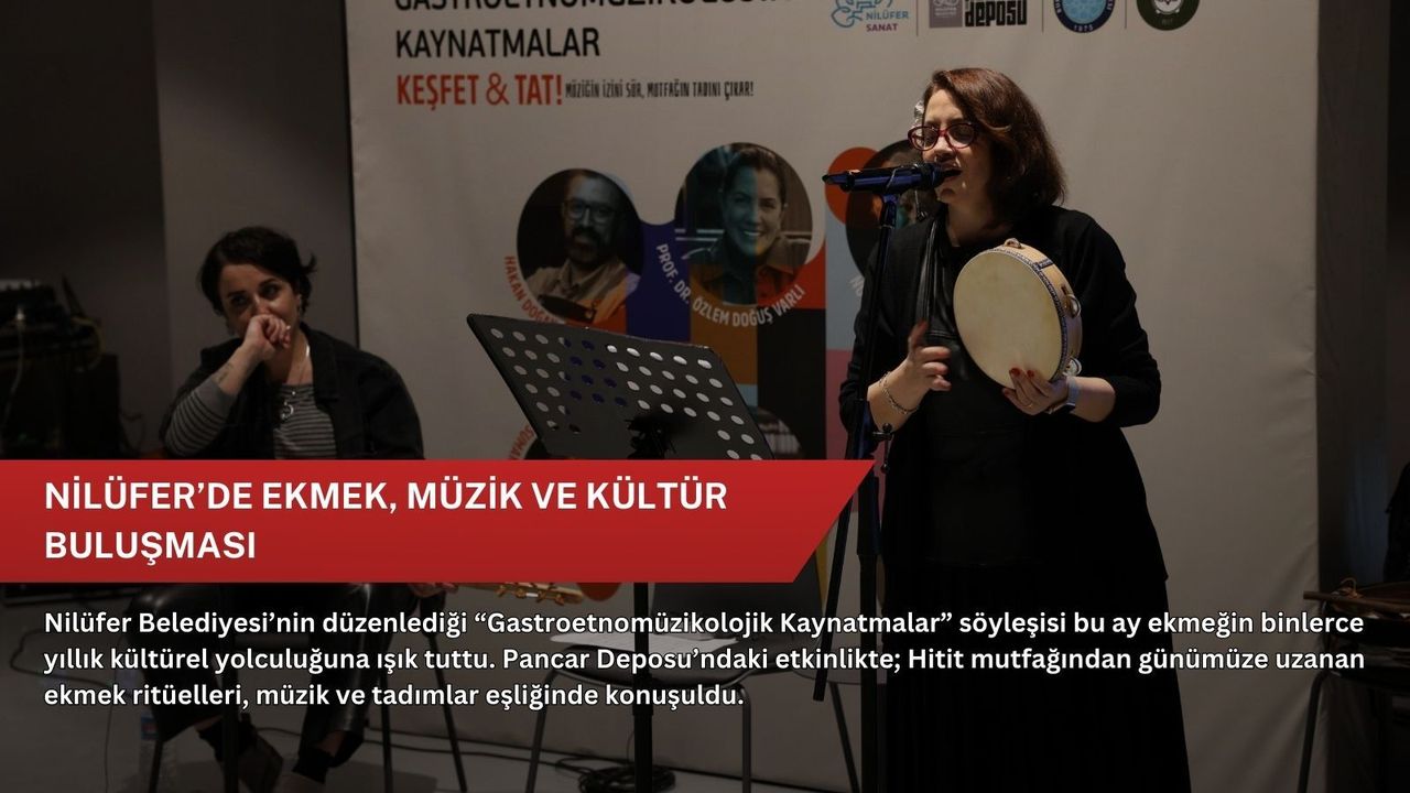 Nilüfer Belediyesi Pancar Deposu’nda mutfak kültürü ile müziği harmanlayan “Gastroetnomüzikolojik Kaynatmalar” etkinliğinde bu ay, sofraların baş tacı olan “ekmek” konuşuldu. Prof. Dr. Özlem Doğuş Varlı’nın sunumuyla gerçekleşen buluşmada, ekmeğin sadece bir besin maddesi olmadığı; ritüelleri, şarkıları ve inanışıyla toplumsal hafızanın taşıyıcılarından biri olduğu vurgulandı. Yoğun ilgi gören söyleşiye, Nilüfer Belediye Başkan Yardımcısı Bukle Erman da katıldı.