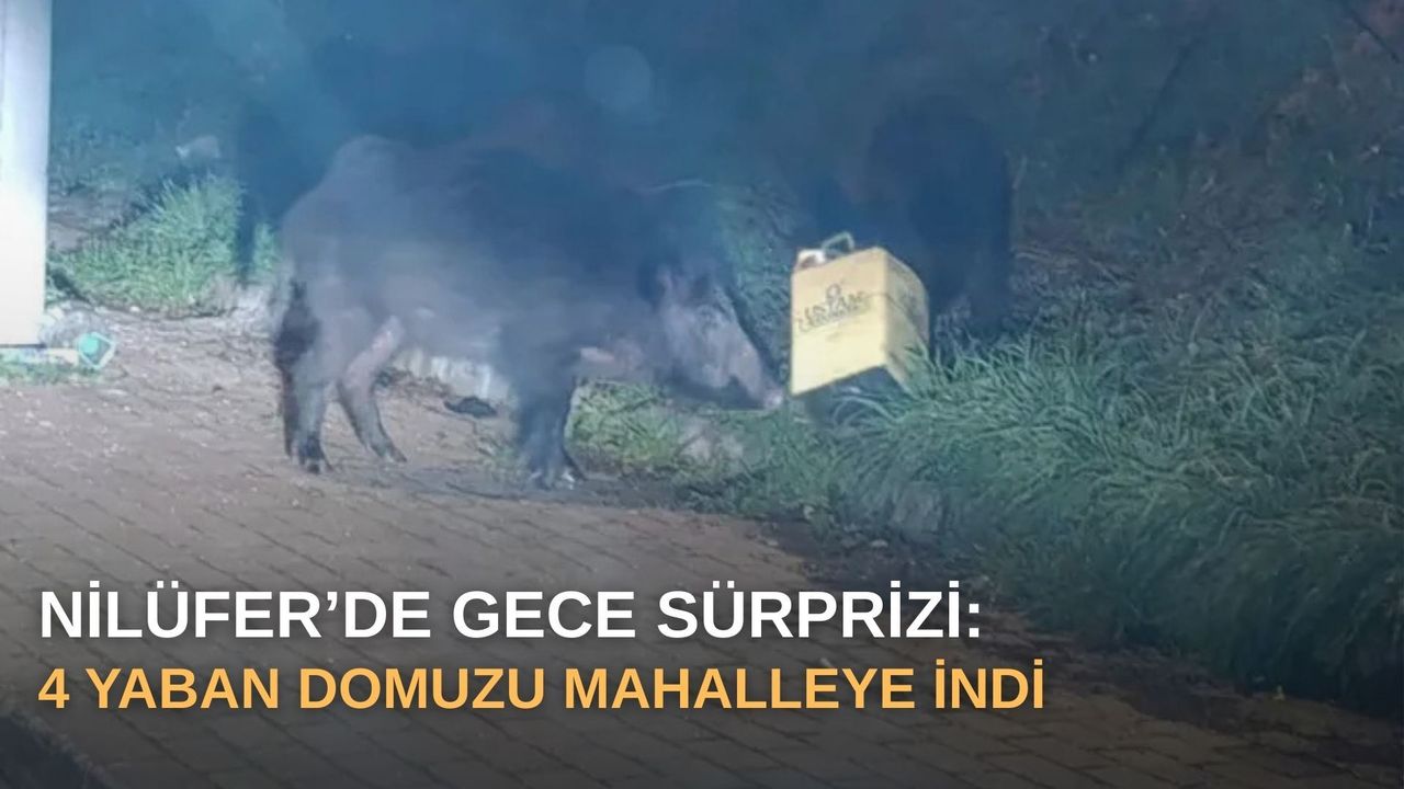 Bursa’nın Nilüfer ilçesi Odunluk Mahallesi’nde gece saatlerinde dikkat çeken anlar yaşandı. Ormanlık alanlardan indiği belirtilen 4 yaban domuzu, mahalledeki çöp konteynerlerinin çevresinde yiyecek ararken görüldü.