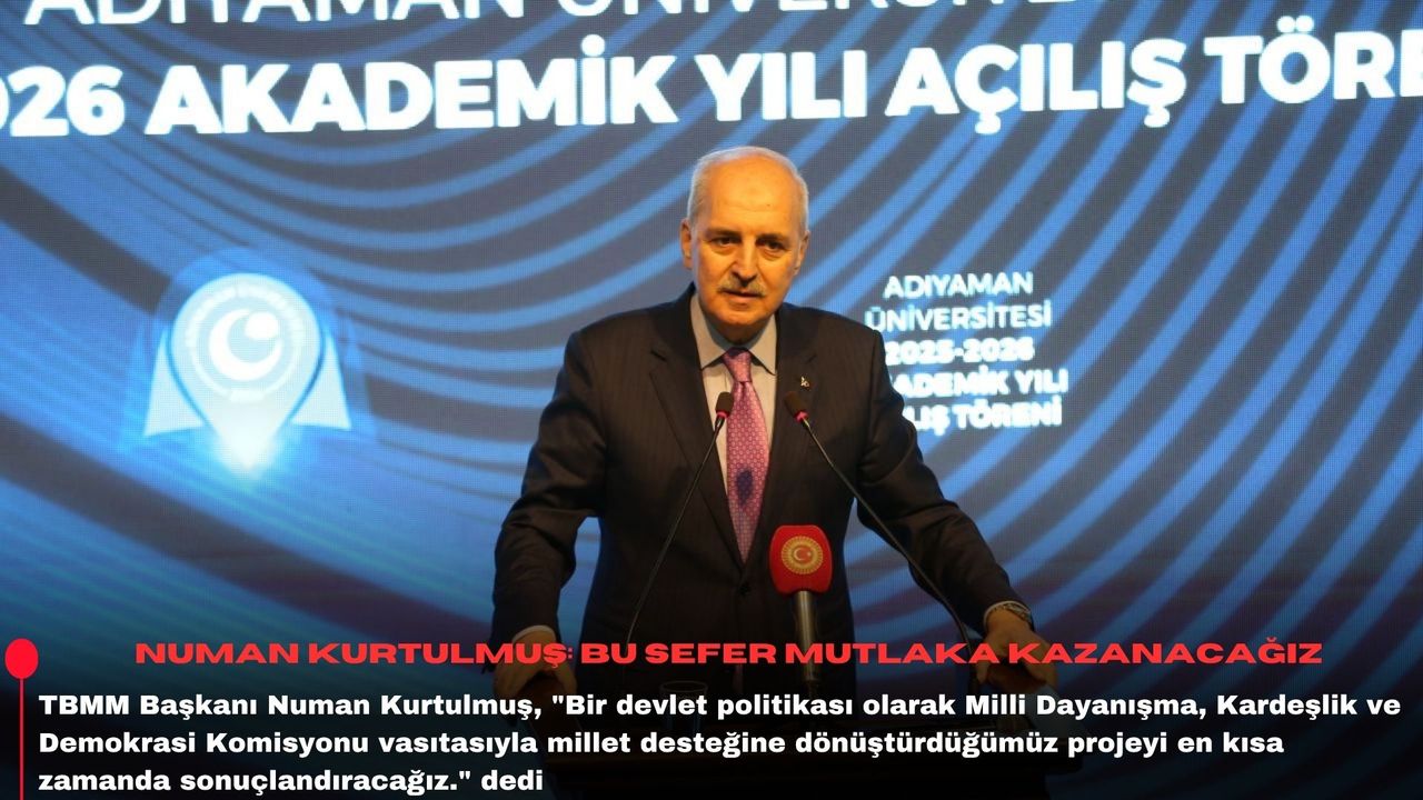 TBMM Başkanı Numan Kurtulmuş, "Bir devlet politikası olarak Milli Dayanışma, Kardeşlik ve Demokrasi Komisyonu vasıtasıyla millet desteğine dönüştürdüğümüz projeyi en kısa zamanda sonuçlandıracağız." dedi.