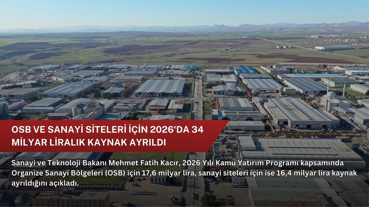 Program kapsamında sanayi altyapısına güçlü bir destek sağlandığını vurgulayan Kacır, "Sayın Cumhurbaşkanımızın imzasıyla yayımlanan 2026 Yılı Kamu Yatırım Programında Organize Sanayi Bölgelerimiz için 17,6 milyar lira, sanayi sitelerimiz için 16,4 milyar lira kaynak ayrıldı." ifadesini kullandı.