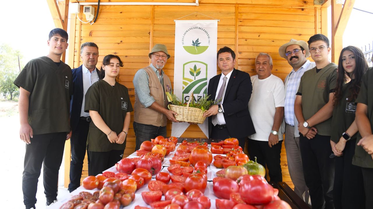 Osmangazi Belediye Başkanı Erkan Aydın, Gazi Tarım A.Ş’nin Hamidiye Tarım Mesleki ve Teknik Anadolu Lisesi’nin tarlasında yetiştirdiği organik ürünlerin hasadına katıldı. Hiç bir tarım ilacı kullanılmadan yetiştirilen sebze ve meyveler hem sağlıklı beslenmenin hem de yerli tohumun önemini bir kez daha gözler önüne serdi. Gazi Tarım A.Ş’nin Hamitler’deki serasında domates, biber, mısır, fasulye, kavun, karpuz ve kabak tohumlarından elde ettiği fideler Hamidiye Tarım Mesleki ve Teknik Anadolu Lisesi’nin tarlasına ekildi. Uygulama alanına ekilen fideler ürün vermeye başladı. Ata tohumlarından yetiştirilen meyve ve sebzeler tohum alınmak için toplanmaya başlandı. Organik ürünlerin hasadına katılan Osmangazi Belediye Başkanı Erkan Aydın, üretim süreciyle ilgili bilgiler alarak toplanan ürünleri inceledi.
