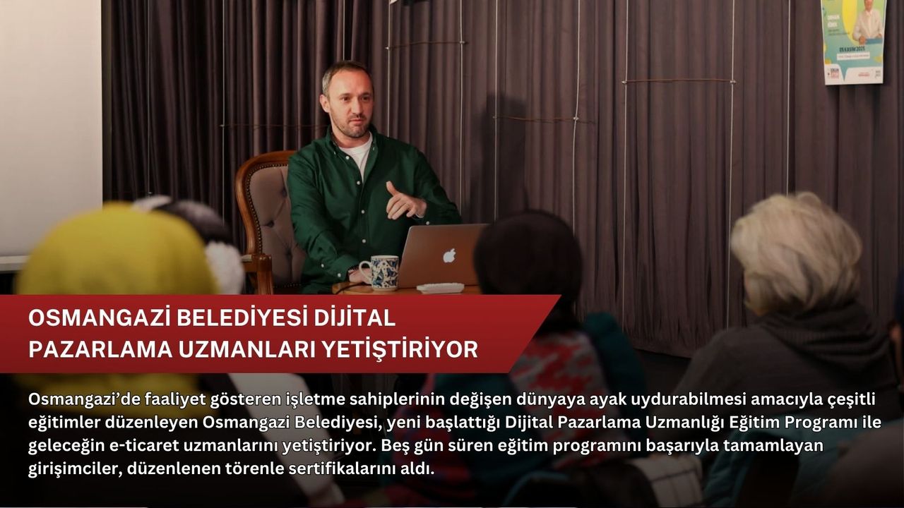 Eğitmen Mustafa Sönmezay ise, “Osmangazi Belediyesi ile birlikte Dijital Pazarlama Uzmanlığı üzerine bir eğitimi tamamlıyoruz. Kursiyerlere sosyal medya, sosyal medya reklamcılığı ve e-ticaret üzerine eğitimler verdik. Günümüzde çok fazla ilgi gören e-ticaret, ülkemizde her geçen gün hızla ilerliyor. E-ticarete nereden başlanabileceği ve hangi konulara önem verilmesi gerektiğini özellikle vurguladık. Türkiye’de her yüz alışverişin 20’si, yani beşte biri online olarak gerçekleşiyor. Böyle bir dijital hayata ayak uydurmak için kursiyerlere elimizden geldiğince yol göstermeye çalışıyoruz. Bu eğitimler, ticaretle uğraşanlar için önemli bir ufuk açtı. Hangi ürünün dijital ortamda nasıl pazarlanabileceği, nereden başlanacağı ve nasıl ilerlenebileceği konusunda bir ön fikir ve altyapı sağlamış olduk” diye konuştu.