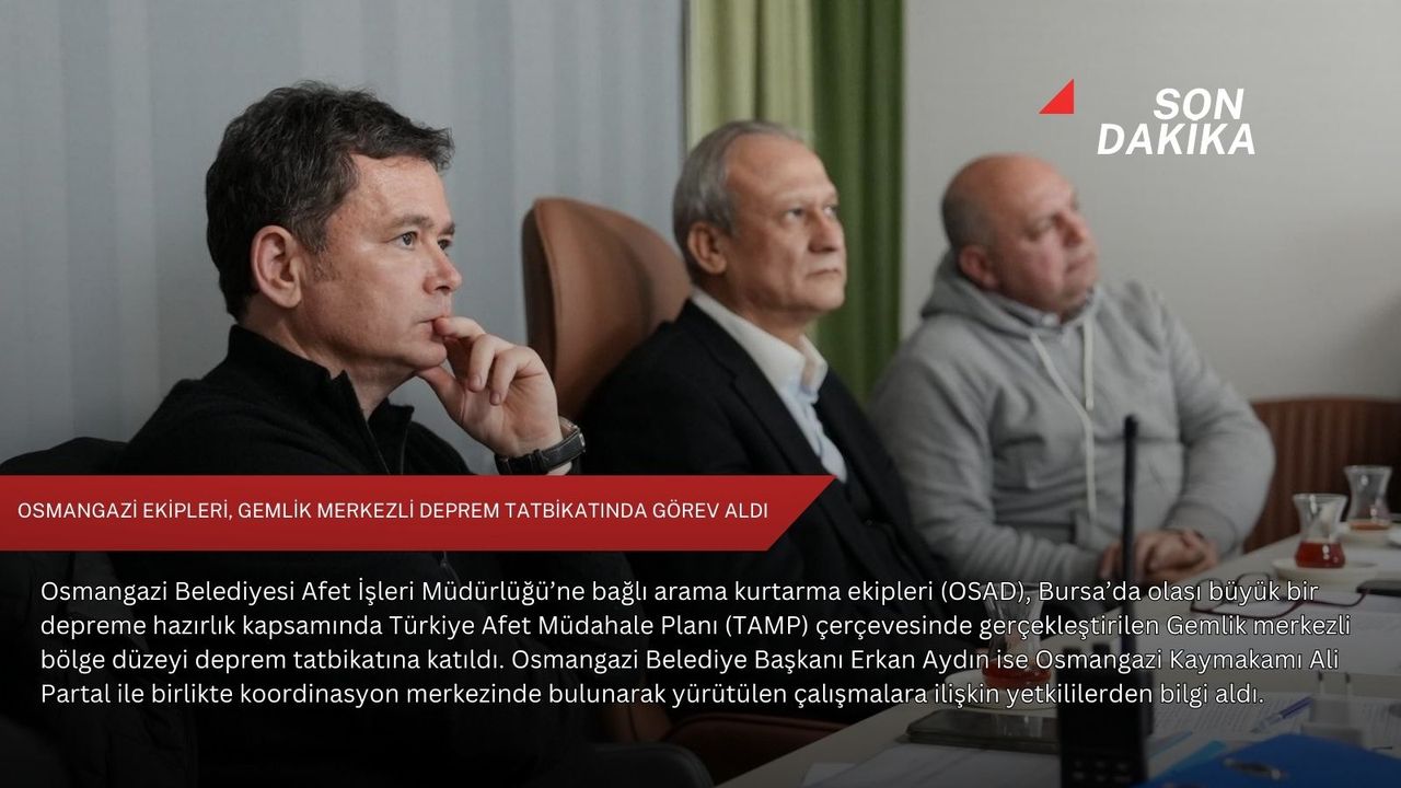 Bursa Valisi Erol Ayyıldız’ın başkanlığında gerçekleştirilen tatbikatta, Osmangazi Belediyesi Afet İşleri Müdürlüğü’nün yanı sıra 22 afet çalışma grubu görev aldı. Türkiye Afet Müdahale Planı (TAMP) çerçevesinde düzenlenen tatbikat senaryosuna göre, 12 Ocak 2026 günü saat 00.00’da Gemlik merkezli 6,7 büyüklüğünde bir depremin meydana geldiği varsayıldı. Senaryo gereği özellikle Gemlik ve Orhangazi ilçelerinde ağır hasar, bina yıkımları ve can kayıplarının yaşandığı kabul edilerek arama kurtarma ile müdahale çalışmaları başlatıldı.