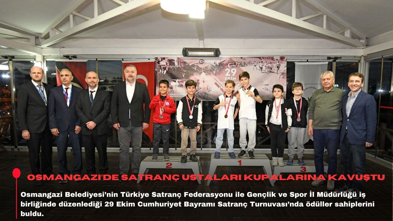 Osmangazi Belediyesi Gençlik ve Spor Hizmetleri Müdürlüğü ev sahipliğinde Sukaypark Tesisleri’nde gerçekleşen 29 Ekim Cumhuriyet Bayramı Satranç Turnuvası, kıyasıya mücadelelere sahne oldu. 2025–2026 satranç sezonunun ilk turnuvası olma özelliğini taşıyan organizasyonda toplam 64 sporcu ter dökerken, 8 yaş ve altı kategorisinde Bersis Arda Güvercinci birincilik, Ömer Efe Akman ikincilik, Aziz Koç üçüncülük kürsüsüne oturdu. Sporcuların büyük heyecan yaşadığı turnuvanın 10 yaş ve altı kategorisinde ise Bersey Arslan Güvercinci birincilik, Kaan Uras Katip ikincilik, Yiğit Barış Evci üçüncülük başarısı yakaladı.
