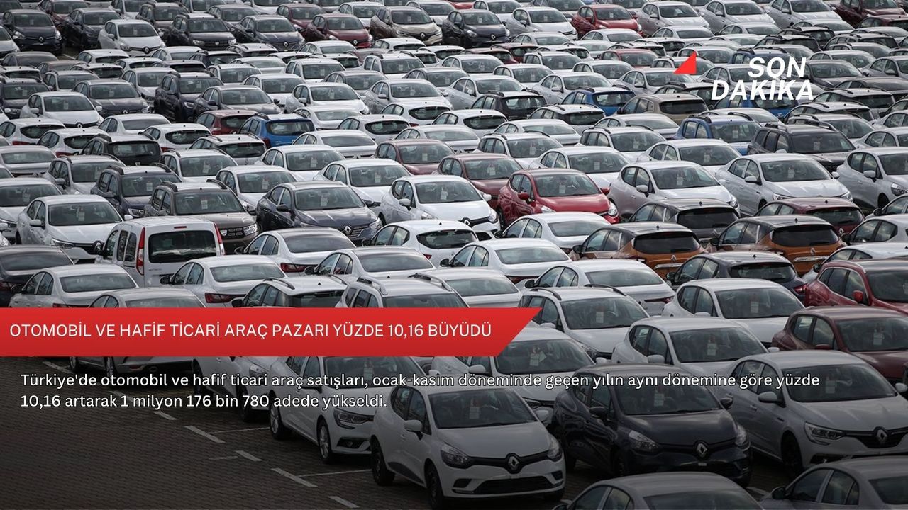 Otomotiv Distribütörleri ve Mobilite Derneğinin (ODMD) Kasım 2025 verilerine göre, otomobil satışları, ocak-kasım döneminde geçen yılın aynı dönemine kıyasla yüzde 10,96 artarak 938 bin 177, hafif ticari araç satışları da yüzde 7,13 yükselerek 238 bin 603 adet olarak gerçekleşti. Satılan otomobil ve hafif ticari araç sayısı aynı dönemde yüzde 10,16 artarak 1 milyon 176 bin 780 oldu.