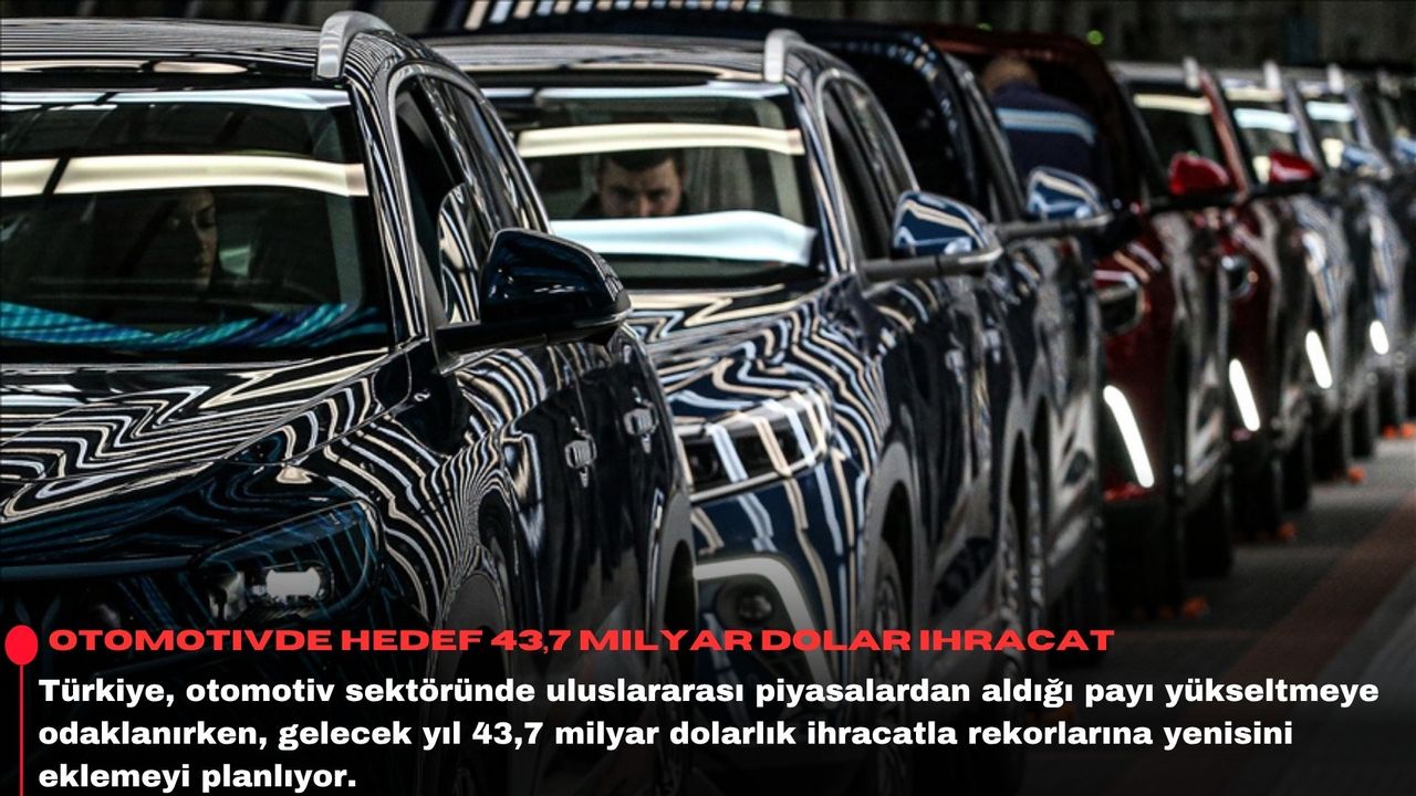 Türkiye'de otomotiv ihracatının yükseltilip ithalatının da düşürülmesi hedefler arasında bulunuyor. Bu yıl sonu bu alanda 39,2 milyar dolarlık ihracat hedeflenirken 2026'da bunun 43,7 milyar dolara ulaştırılması planlanıyor. Böylece, son yıllarda rekor ihracatlara imza atan sektörün gelecek yıl çıtayı daha yükseğe taşıması öngörülüyor.