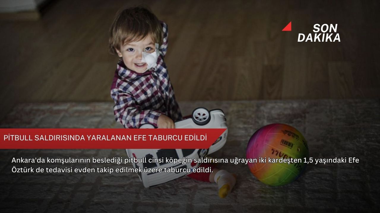 Etimesgut’ta 30 Kasım'da oturdukları apartmanda komşularının beslediği pitbull cinsi köpeğin saldırısında yüzünden yaralanan 1,5 yaşındaki Efe, 9 günlük tedavinin ardından taburcu edildi.