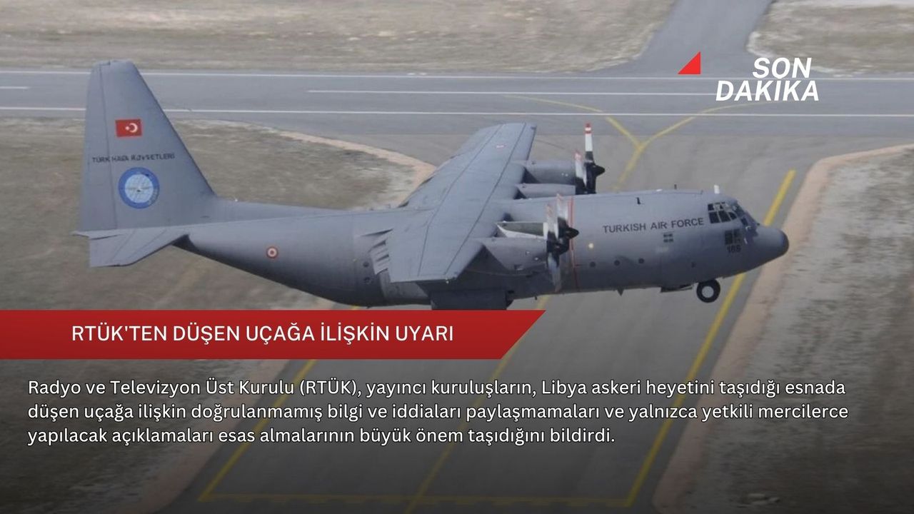 "Yayıncı kuruluşlarımızın dikkatine, Ankara Esenboğa Havalimanı'ndan Trablus'a giderken düşen hava aracına ilişkin gelişmeler, resmi makamlar tarafından yakından takip edilmektedir. Bu süreçte, doğrulanmamış bilgi ve iddiaların paylaşılmaması, yalnızca yetkili mercilerce yapılacak açıklamaların esas alınması büyük önem taşımaktadır. Tüm yayıncı kuruluşların gerekli özeni göstereceğine inanıyor, kamuoyunun doğru bilgilendirilmesine katkı sunan sorumlu yayıncılık anlayışı için şimdiden teşekkür ediyoruz."