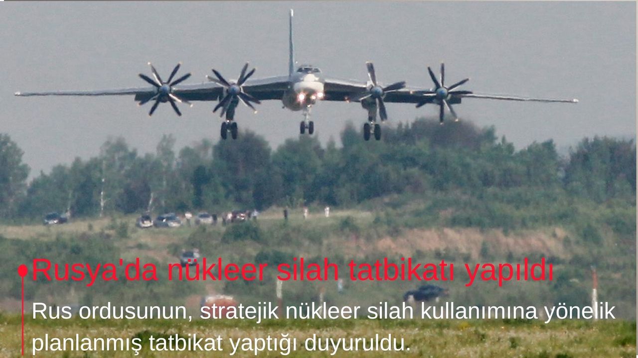 Kremlin Sarayından yapılan açıklamaya göre, Rusya Silahlı Kuvvetlerinin, Rusya Devlet Başkanı Vladimir Putin'in komutasında stratejik nükleer silah kullanımına yönelik tatbikat gerçekleştirdiği belirtildi.